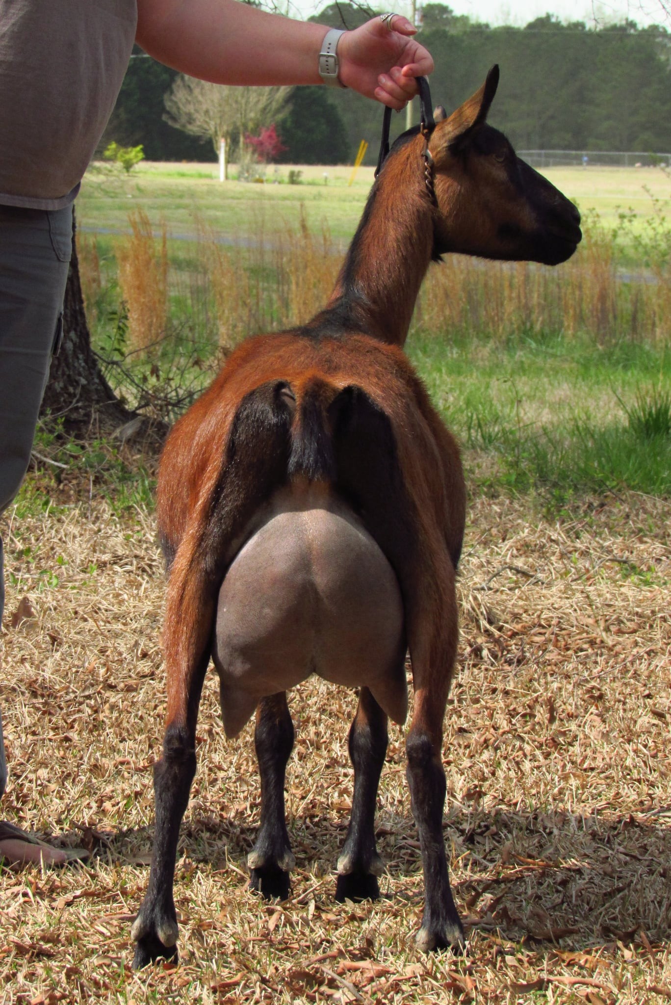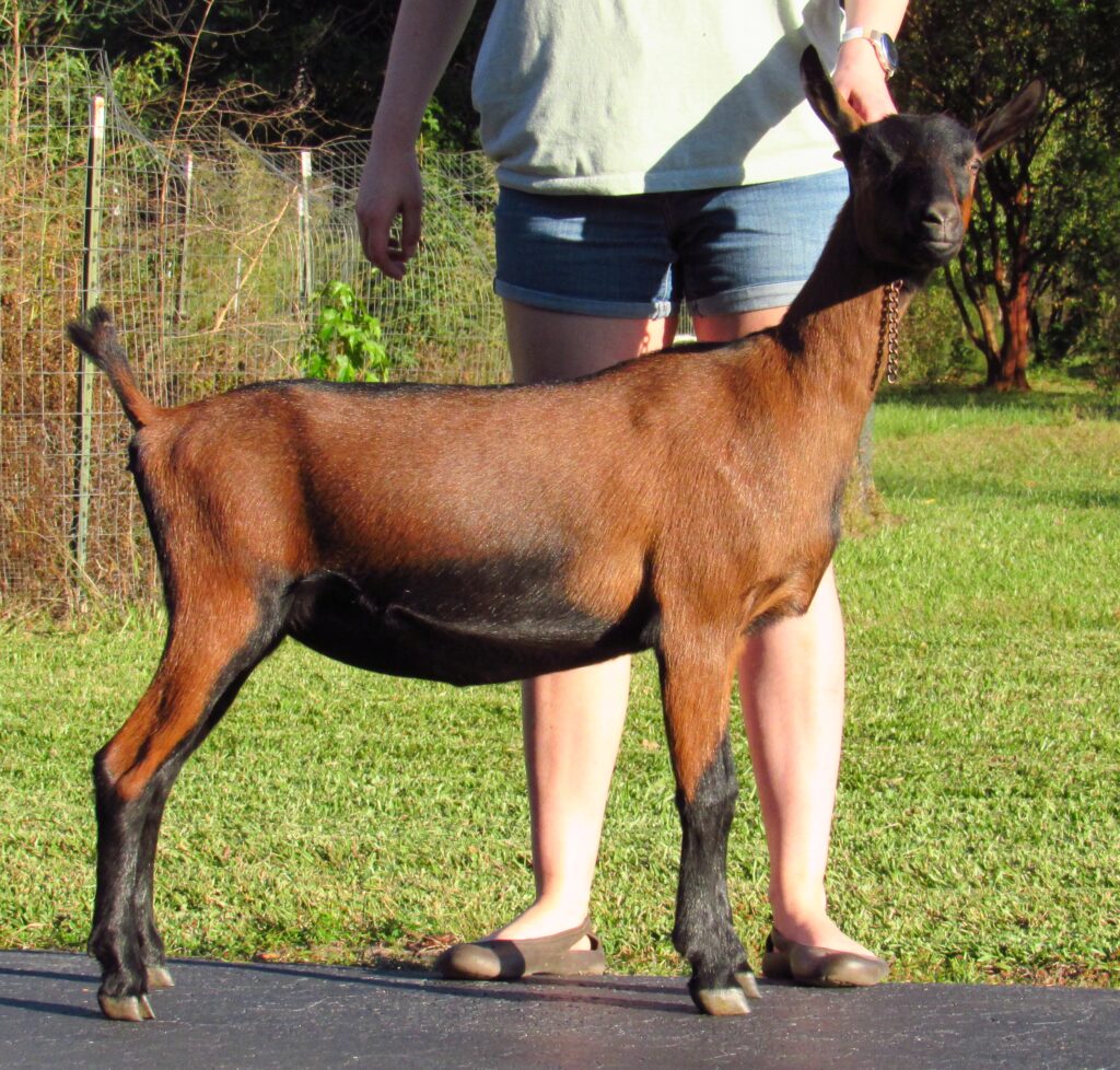 Fairy Ring OKL Justine ADGA Genetics Pedigree DOB: 2/22/2025 North Carolina State Fair 2025 – Reserve champion junior Oberhasli under Tom Cox 10/25/25 8 months Dam: Fairy Ring BSK Amalthea Sire: Ober-Boerd King’s Landing Sire’s dam: GCH Ober-Boerd Kiss Me, Kate 2*M